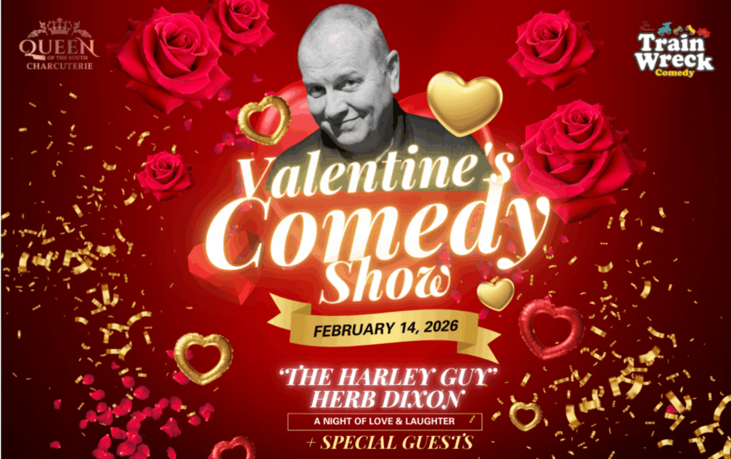 Sometimes you gotta shake off the awkward, nervous energy and bring your date to a comedy show! It’s the perfect way to laugh the night away, especially when it includes local comedic legend, ‘The Harley Guy’ Herb Dixon. Paired with award-winning Queen of the South Charcuterie, and you’ve got the perfect mix of good food and even better company.