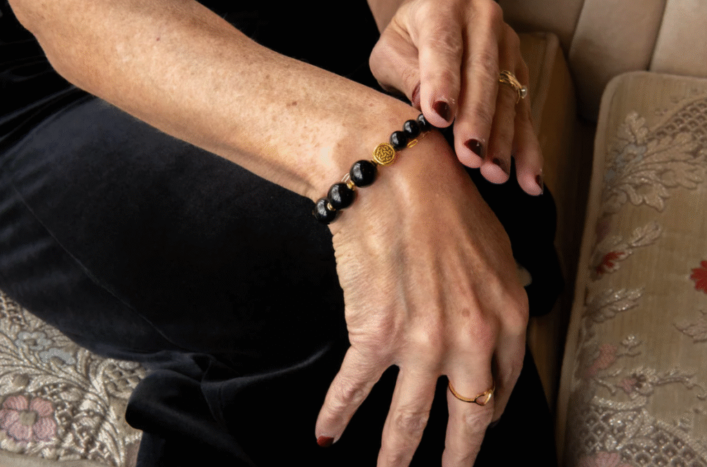 Made by a mother and daughter team, these handcrafted jewellery pieces bring elegance and joy straight from the Okanagan. With easy wear stretch design, beautiful black onyx, and a few gold touch accents, this is an easy piece to style with any outfit!